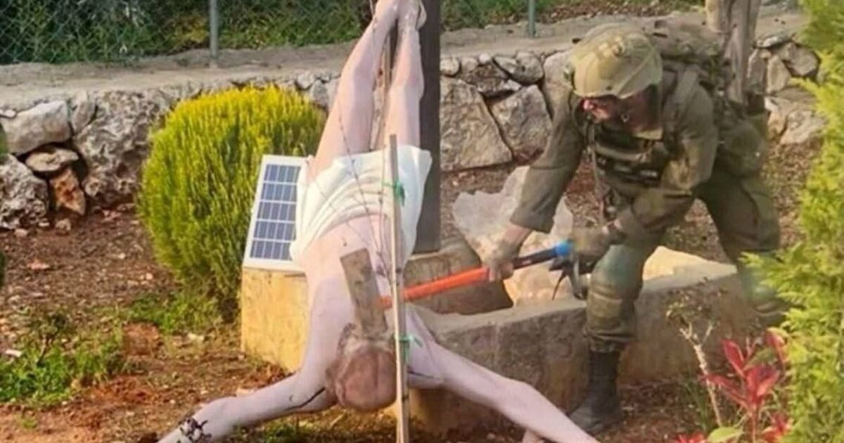 Click to see full-size image. (X) A viral photograph showing an Israeli soldier hitting a statue of Jesus Christ in southern Lebanon with a sledgehammer surfaced online on April 19 sparked outrage. The Israel Defense Forces (IDF) confirmed the authenticity …
